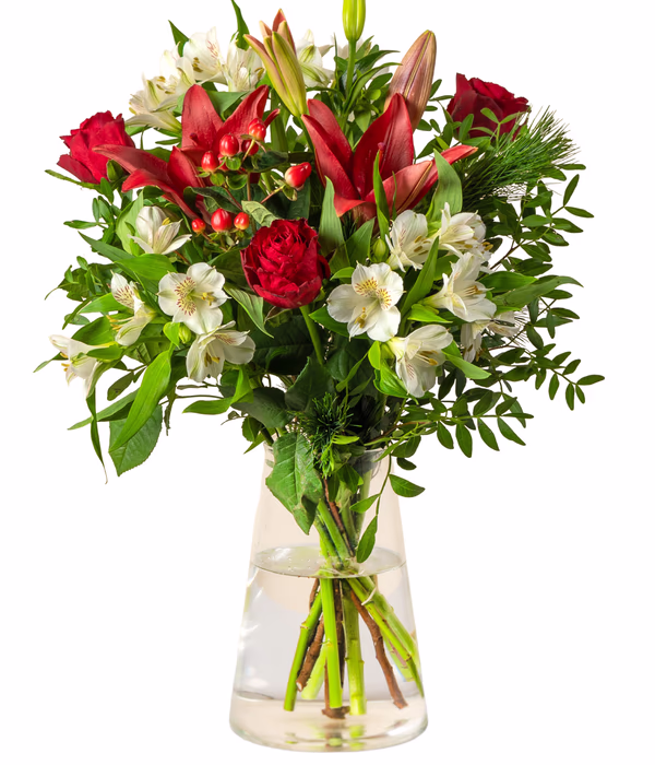 Celebrate Christmas with our special Christmas Eve bouquet. Send cheer when they least expect it. The Christmas Eve bouquet is a festive embrace of red lilies, red roses and white alstroemeria— a rich blend that captures the spirit of the season. Delivered effortlessly through the letterbox, it’s Christmas charm made easy.
