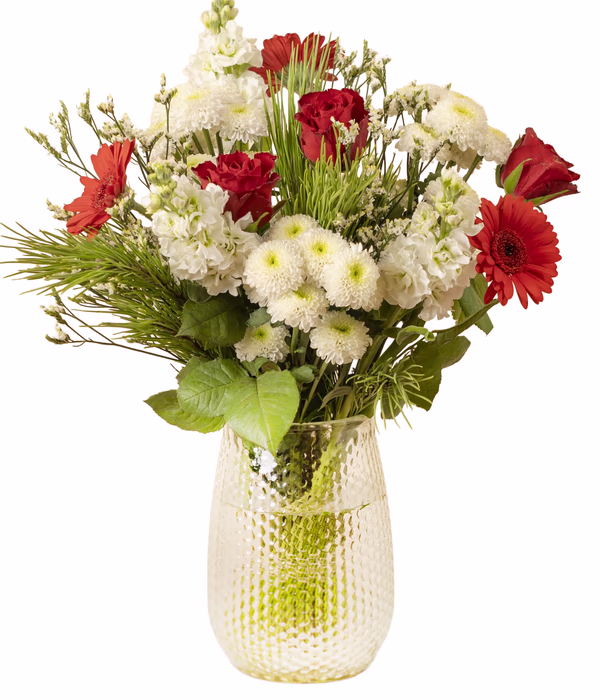 Celebrate the season in classic style with the Classic Christmas bouquet — a heartwarming blend of white stocks, red roses and white santini. Rich, festive tones meet wintry freshness in a bouquet that captures the true spirit of Christmas. Perfect for gifting or brightening your own home, it’s a joyful reminder of all that makes the season special.