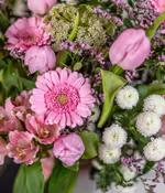 A lovely bouquet for your lovely mum. Pretty pink gerbera and tulips are the focal point in this beautiful florist bouquet and are complimented by stunning seasonal foliage. Send top-quality flowers that are affordable this Mother's Day. Please note that substitutions of some flowers may be necessary to ensure timely delivery, these will match the colour scheme and be of the same value.