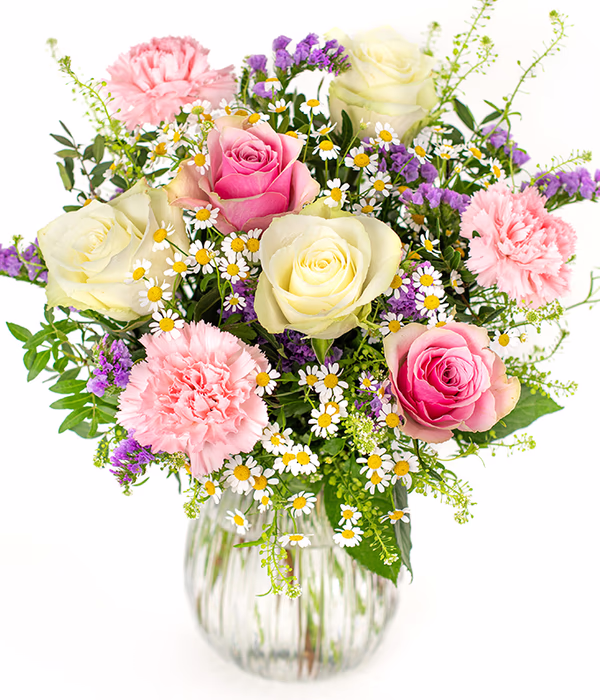 The flowers are created by a local florist and may vary depending on season and availability. We always do our best to emulate the image and make sure the bouquet matches the colour and shape, you will always get a bouquet that corresponds to the value you paid.